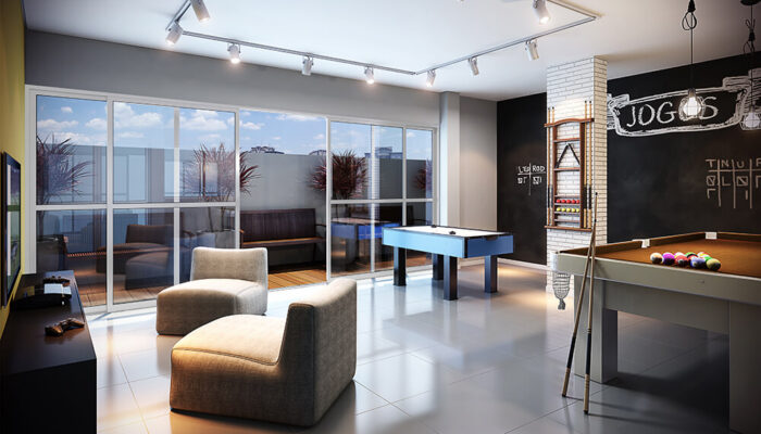 Área Externa: Piscina adulto com raia, piscina infantil, deck / solário, salão de festas, salão de jogos, brinquedoteca, miniquadra, redário, espaço pet, fitness, churrasqueiras, playground e praças de estar.